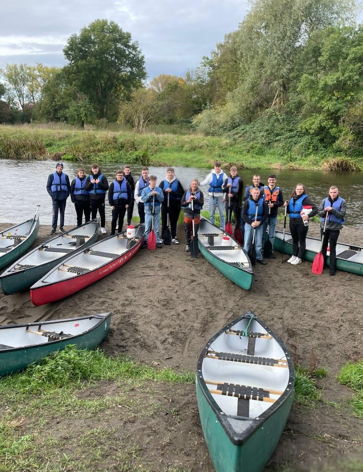 Gestartet wurde mit einem gemeinsamen Frühstück und einer kleinen Kennenlernrunde. Anschließend ging es mit dem gemieteten Reisebus nach Wegeleben, zum Startpunkt der Kanutour. Nach einer kurzen Einweisung und der Versorgung mit Rettungswesten konnte es auch schon losgehen. Aufgeteilt in Zweierteams stach die Truppe in die See. Nachdem die ersten wackligen Meter überstanden waren, kamen alle sehr gut mit dem Kanufahren zurecht und fanden ihren Rhythmus. Die Tour erstreckte sich ca. 8 Flusskilometer über die Bode nach Gröningen.